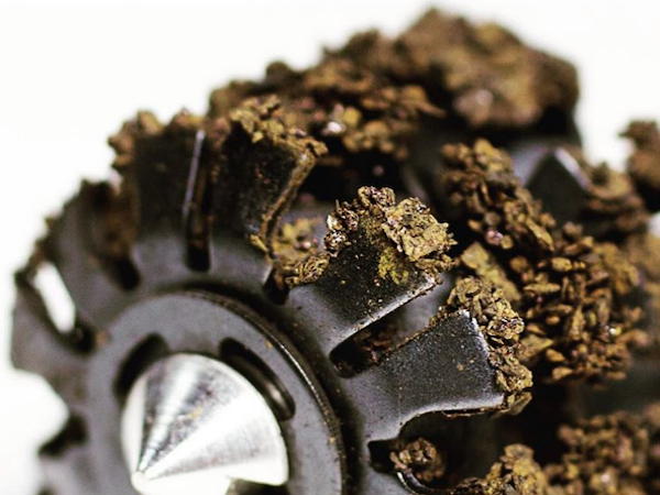 ■コアを回転させながら、圧縮エア(0.5MPa)でコアの谷間に捕獲されたコンタミを吹き、廃棄物コンテナで受けて回収します。